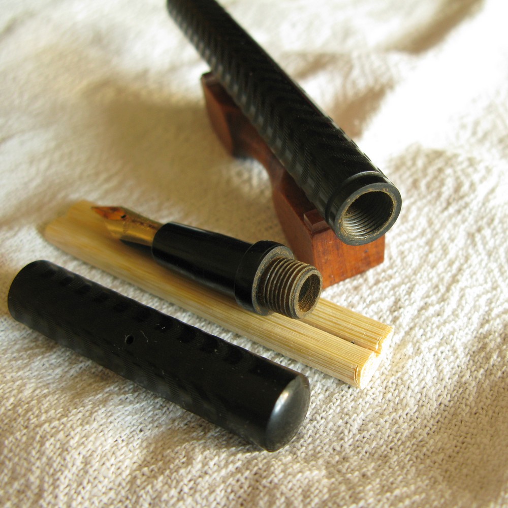 BCHR is the acronym for Black Chase Hard Rubber. In other words, a description for many a pen from the end of the nineteen century and beginning of the twentieth. Hard rubber –ebonite was a commercial name— is a polymer formed by the vulcanization of rubber and sulfur. Its hardness and its ease to being mechanized made it suitable for pen manufacturing. Finally, embossing was the typical procedure to decorate the otherwise black material.